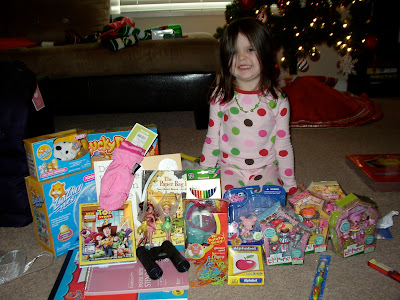 This is all of Gwen's booty, but its only about half of what she got overall. Grandmom and Mamu's presents hadn't arrived yet.